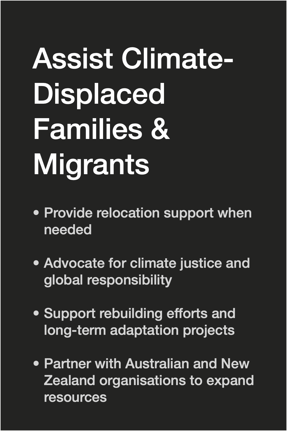 Our mission is to uplift and protect vulnerable communities across Australia and Oceania by supporting those impacted by climate disasters, water scarcity, poverty, and limited access to healthcare and education.